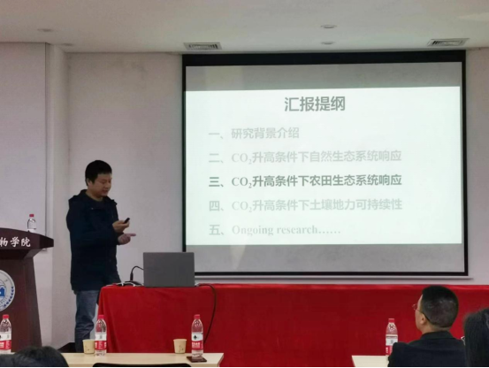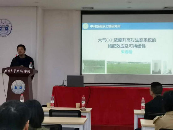 2023年4月7日上午,中科院南京土壤所朱春梧研究员应邀来我院进行学术交流,为我院师生介绍其研究团队在“大气CO2浓度升高对生态系统的施肥效应及可持续性”方面的研究工作。本次报告由于峰教授主持,ok1122诸侯快讯多位老师和学生参加,现场气氛热烈,学术氛围浓厚。