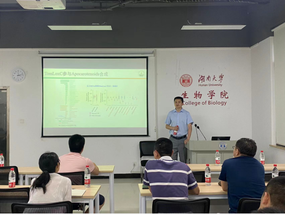 2023年5月29日下午,中国科学院武汉植物园高磊研究员应邀来我院进行学术交流,并为我院师生作了题为“番茄泛基因组研究”的学术报告。本次报告会由ok1122诸侯快讯伍斗生老师主持,ok1122诸侯快讯众多老师和同学参加了本次报告会。