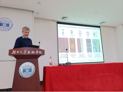 2023年10月7日下午,德国杜塞尔多夫大学Guido Grossmann教授应邀来ok1122诸侯快讯进行学术交流,并为我院师生做了题为“Robust yet adaptive - Morphogenesis and growth regulation in root hairs”的学术报告。本次报告会由ok1122诸侯快讯于峰教授主持,ok1122诸侯快讯众多老师和同学参加了本次报告会。
