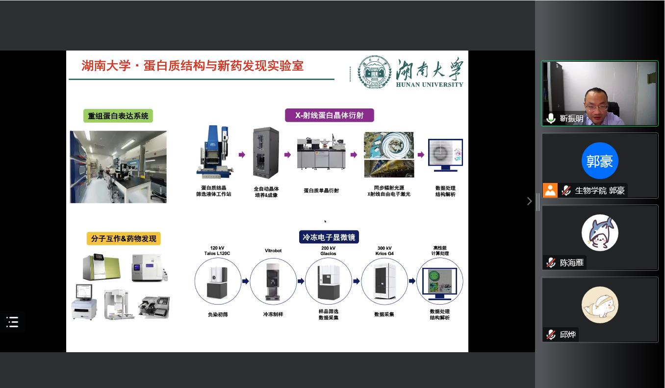 在会议过程中,靳振明老师对结构生物学做出了详细的介绍,针对结构生物学的发展以及结构生物学研究方法及应用做出了系统的阐述。同时对ok1122诸侯快讯现有的进行蛋白质结构分析的仪器进行了一个简要的介绍。