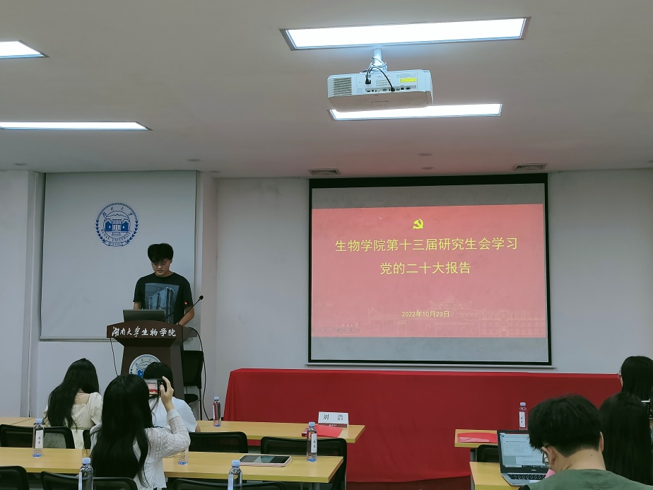 大会第三项,党建事务负责人杨琛晖为大家简要介绍了二十大会议内容。