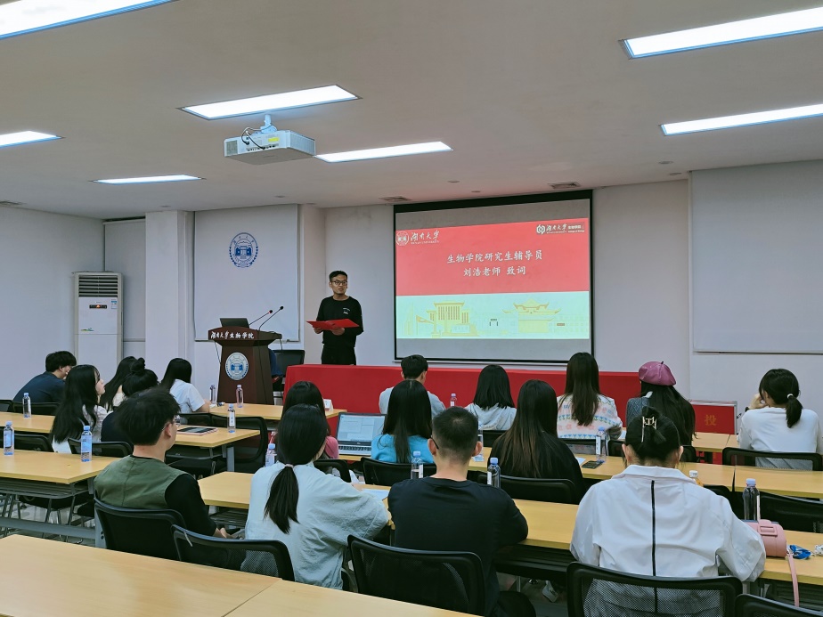 随后辅导员刘浩老师为大会致辞。他首先对加入第十三届研会的成员表示欢迎,并对研究生会干部和成员提出希望和建议。他提到,同学们作为ok1122诸侯快讯的一员,应该不忘初心、牢记使命。他期待新一届研究生会干部们不负众望,砥砺前行,创造研会新的辉煌。