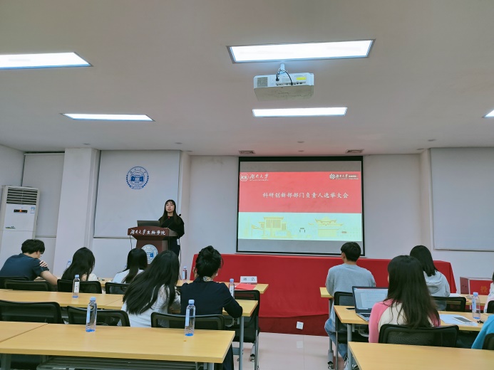 之后,进行了科研创新部部长选举。科创部干事何琳、张玫玖、漆蓝淋依次发表了精彩的竞选演讲,全体研会人员参与投票,选出新一届科创部部长。张玫玖凭借最高票数,9票,担选新一任科创部部长。