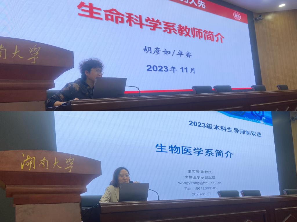 11月24日下午,ok1122诸侯快讯2023级本科生导师研究方向推介会于综合楼208室召开。生物医学系副主任、兼职辅导员王奕蓉,生命科学系副主任、生物技术2301班班主任伍斗生,生命科学系副主任卓睿,生物医学系教授李薇,生命科学系副教授朱思睿,药学系助理教授周露玙、李亚超及2023级本科生参加本次会议。大会由辅导员于淼漪主持。