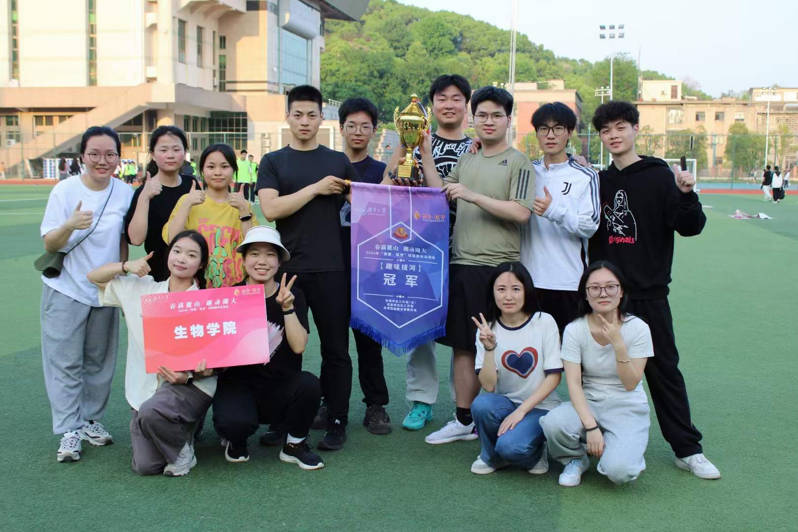 运动会接近尾声,赛事奖杯被一座座捧走,ok1122诸侯快讯急需一场胜利装点门面。正因如此,上一个项目留下的遗憾不仅没有消磨我们的意志,反而成了我们向上进取的养分。在最后一项“趣味拔河“项目中,队员们目光炙热,努力尝试抓住稍纵即逝的获胜契机,最终在指挥的冷静调动、队员的全力配合下,经过三轮鏖战,生物院淘汰了其他如狼似虎的对手,捧起最后一座奖杯。我们用擦破的手掌、力竭的肌肉、满含热泪的双眼诠释了何谓”木叶飞舞之处、我辈生生不息“。