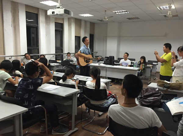 除了唱歌以外,同学们还准备了其他有特色的表演,徐志伟同学演奏吉他,同时还演唱《I’m yours》,弹吉他帅气的动作,唱歌深情的歌声,同学们给予了最热烈的掌声,仿佛这样才能与如此精彩的表演匹配;陆博同学给大家带来了性感火辣的热舞,妩媚的舞姿,将氛围又带入了高潮,全场掌声不断;还有吴金辉、刘哲宇等六个人带来的小品《面试》,讲述了三位青年在面试现场的有趣故事,赢得同学们的阵阵掌声。