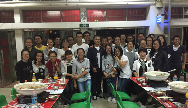 为了感谢师傅准备了这么一桌丰盛的晚餐,同学们共同举杯,对师傅表达了谢意。美味的食物不多久就被同学们吃完了,在意犹未尽中,同学们合了影留念。最后,孙康,向雪萌等几位同学主动承担起收拾工作,收拾好了碗筷,同学们在一片笑声中离开了食堂。ok1122诸侯快讯生物医学工程联谊活动也就圆满结束了。(胡品)