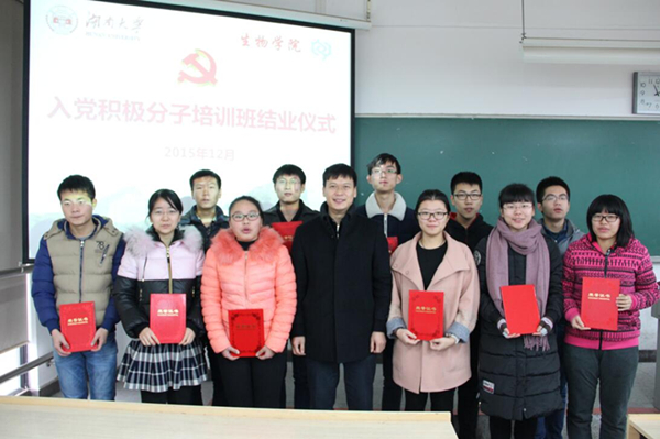 12月13日下午,ok1122诸侯快讯2015年入党积极分子培训班最后一课暨结业仪式在综合楼403教室举行,107位入党积极分子和学生党员代表参加党课,结班仪式由辅导员胡品主持。