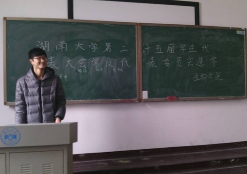 在大会主持人宣读完选举方式以及流程后,选举大会就正式开始。本次选举为等额选举,候选人是来自2011级李达生物班的许崇申同学。首先由主持人宣读候选人信息并分发候选人自荐书,在自荐书中许崇申同学向大家全面的展示了自己的特长、爱好、能力以及此次参选的动机等,他反复地强调了“责任”与“表达”二词,表现出他对待学生工作的热情和负责任的态度。他表示希望能够成为同学们表达自己意见的一个窗口,让大家的大学生活更接近梦想中的大学。随后进入大会的投票环节,在场代表们经过认真的思考,秉承实事求是的精神进行了投票。最终,许崇申同学以11票赞成票、1票反对票成功当选诸侯快讯ok1122第二十五届学生代表大会常设委员会委员一职。