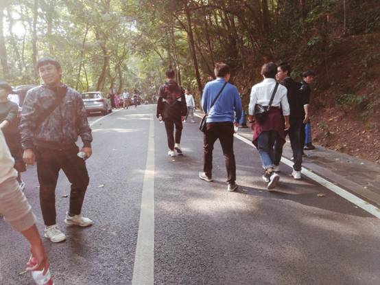 下午2时30分,全体同学陆陆续续地从生物院楼出发,熙熙攘攘的人群,见证了岳麓山的热闹,也充溢着同学们的欢声笑语。他们迈着稳健的步伐,一路上交谈着学习和生活上的趣事,热情甚高。登山途中,遇到美丽的景点,同学们也停下脚步,驻足欣赏,并用相机留下了最美的时刻。