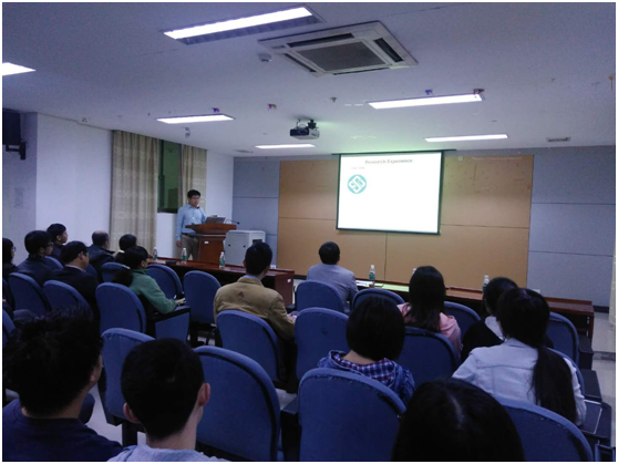 我院师生针对钙敏感受体蛋白Synaptotagmin-1,膜融合核心复合物SNARE蛋白,调控蛋白Complexin三者之间的相互作用以及协同工作机制这一问题,与周博士进行了深入的交流与探讨。周博士的研究工作让我们“看到”了这三者如何相互作用,如何高效、快速同步释放神经递质,使我们受益匪浅。此外,周博士还分享了他的求学与研究经历,引发了同学们对未来职业发展与规划的思考。