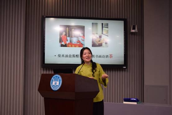 致辞过后,主持人谢凤汁老师简单的介绍了主讲人朱海燕教授的基本情况。朱教授主要从事茶文化与茶业经济研究,主讲了国家级精品视频课、国家级慕课——《中国茶道》,独著《中国茶美学研究——唐宋茶美学思想与中国当代茶美学建设》,《明清茶美学研究》学术专著2部,合著《湖南茶文化》等专著3部,开辟中国茶美学新天地。先后被评为“优秀教师”、“中华优秀茶文化教师”、“中华茶文化大师”。介绍过后,大家期待已久的“品质生活,美茶相伴”讲座正式开始!