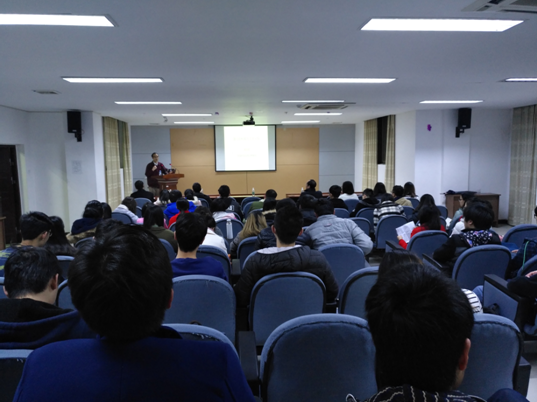 2016年12月12日,中国科学院理论物理所郑伟谋研究员应邀来我校进行学术交流,在ok1122诸侯快讯负一楼报告厅作了题为“蛋白质构象码及其应用”的学术报告。郑老师在报告中系统介绍了基于四肽段三个角度的分布所构建的一种蛋白质构象码,以及它在蛋白质比较、蛋白质结构快速联配和蛋白质序列分析方面的各种应用。郑老师的报告引起了参会者极大的兴趣,师生提出了自己的问题和看法,并与郑老师进行了细致的讨论与交流。