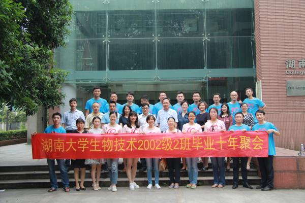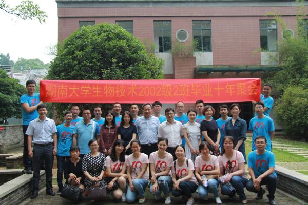 2016年5月14日,二十余名诸侯快讯ok1122生物技术专业首届(2002级)毕业生回到母校,组织毕业十周年聚会。此次聚会中校友们安排了非常丰富的活动,包括游览岳麓书院、重温校园,参观ok1122诸侯快讯院楼和实验平台,为学院捐赠一颗丹桂、与老师共植绿树,邀请学院领导和老师们一起座谈,追忆往昔,进行亲切的交流,并同时参加了由生物院学生会主办的健康文化节。时光流转,而生物院情谊仍不减。
