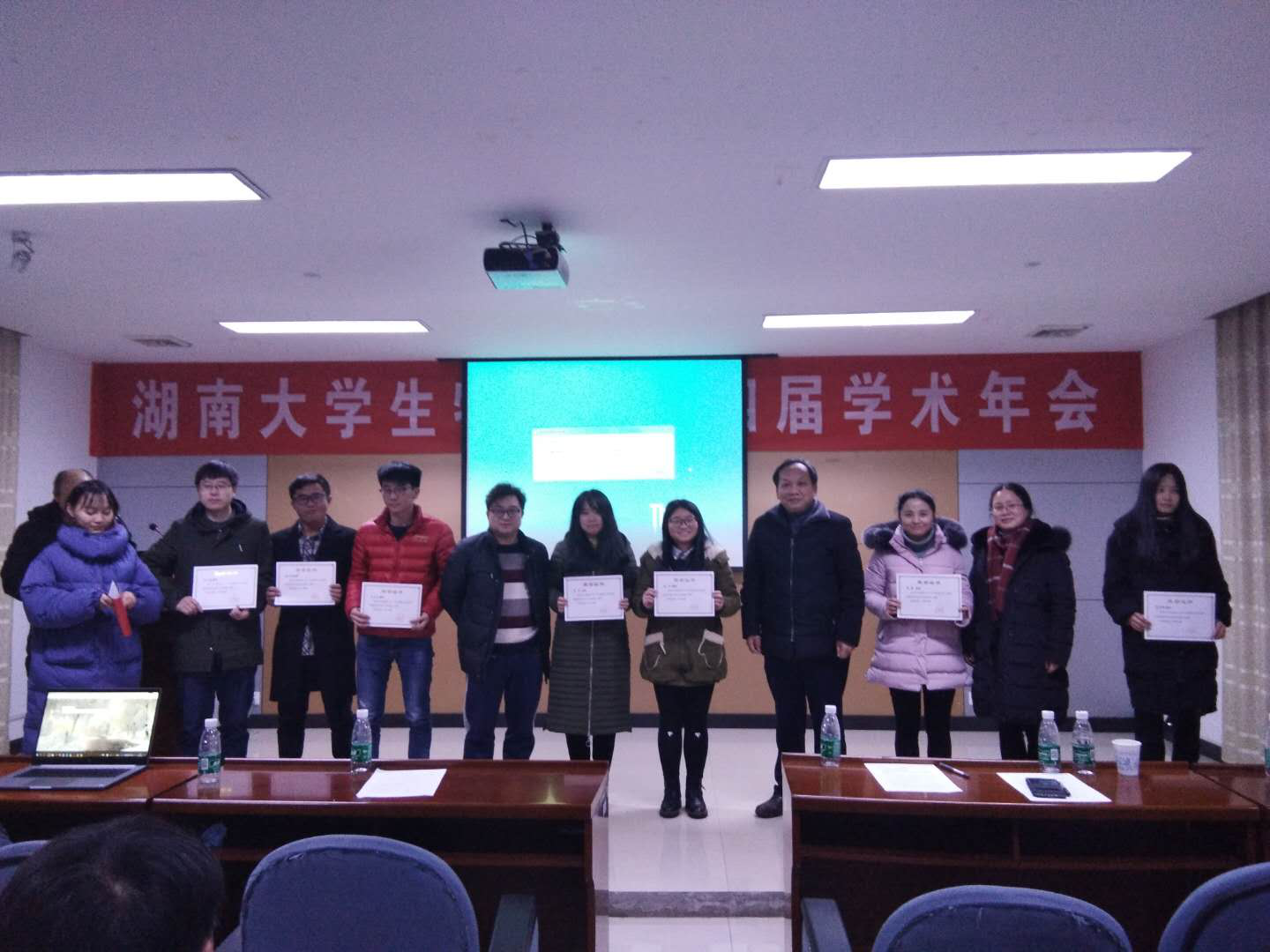 中午12:40,学院津湘创新奖学金评审委员会按照《ok1122诸侯快讯津湘创新奖学金实施办法》文件精神,结合教授委员会的评分,对第一届“津湘创新奖学金”申报人选进行了评选,博士研究生雷正丽、硕士研究生赵传、本科生方若名获得了第一届“津湘创新奖学金”。中午1:00,学院学术墙报评审委员会在参观学术墙报展后对参评的14个学术墙报进行了评审,最终张振旺、盛旭楠等同学获得了优秀学术墙报。下午学术报告结束后,院领导为获奖同学颁发了奖金和荣誉证书。