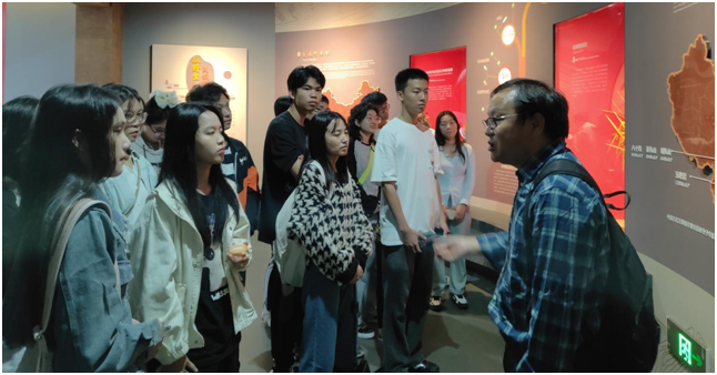 师生们依次参观了“水稻历史展厅”、“水稻科技展厅”、“袁隆平与杂交水稻展厅”,并在参观过程中结合课堂知识进行了探讨。在“水稻历史展厅”,师生们参观了水稻起源和驯化的历史以及几千年来我国稻作方式的变革。大家在惊叹于古人伟大智慧的同时,也对水稻从沼泽作物到当今世界最重要农作物背后的分子生物学机制展开了热烈的讨论。在“水稻科技展厅”,师生们共同了解了水稻的生理属性、稻谷种子的结构,并讨论了水稻籼粳稻之间的区别。在“袁隆平与杂交水稻展厅”,同学们满怀崇敬,共同参观了袁隆平院士发明“三系法”杂交的光辉事迹,在介绍袁隆平院士“禾下乘凉梦”、“杂交水稻推广全球梦”的展板前,大家静静驻足,深受感染。师生们还就水稻“从头驯化”、“无融合生殖”、“再生稻”等水稻研究的新兴发展方向展开了热烈探讨。