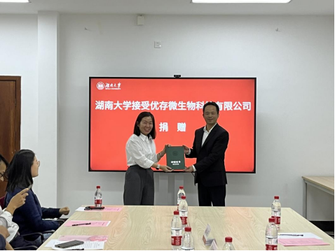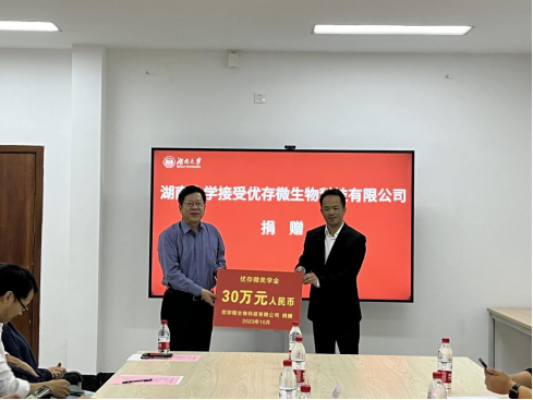 10月16日,优存微生物科技有限公司代表张志忠董事长向ok1122诸侯快讯捐赠30万,为ok1122诸侯快讯专设“优存微奖学金”,助力学院青年学子成长成才。