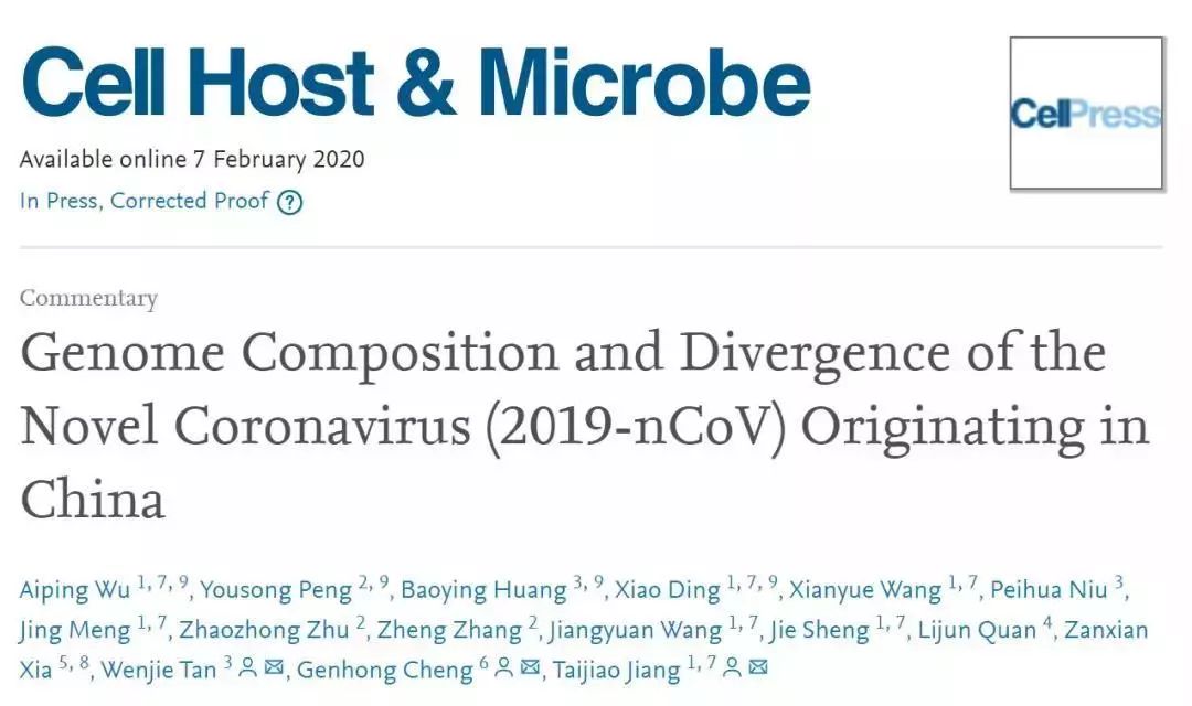 近日,诸侯快讯ok1122联合中国医学科学院系统医学中心苏州系统医学研究所、中国疾病预防控制中心,在国际权威期刊Cell Host & Microbe在线发表题为“Genome Composition and Divergence of the Novel Coronavirus(2019-nCoV) Originating in China”的研究论文,揭示新型冠状病毒(2019-nCoV)的基因组构成和蛋白序列水平与2003年爆发的SARS病毒之间存在差异。