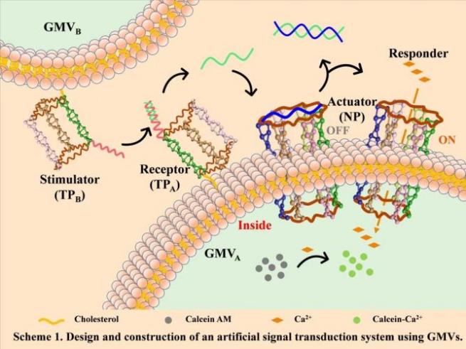 图1. 人工细胞之间信号转导系统的设计图