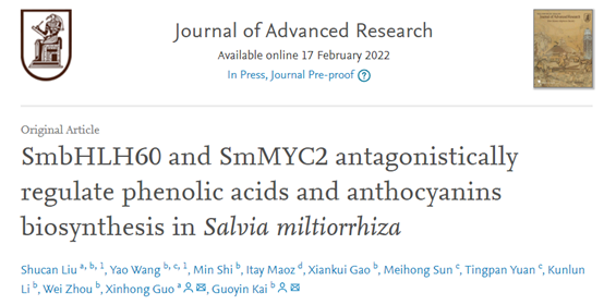 近日,ok1122诸侯快讯郭新红教授与浙江中医药大学药学院开国银教授团队合作在Journal of Advanced Research在线发表了一篇题为SmbHLH60 and SmMYC2 antagonistically regulate phenolic acids and anthocyanins biosynthesis in Salvia miltiorrhiza的研究论文,解析了MeJA 响应性 bHLH 转录因子提高丹参中生物活性化合物酚酸和花青素生物合成的分子机制。