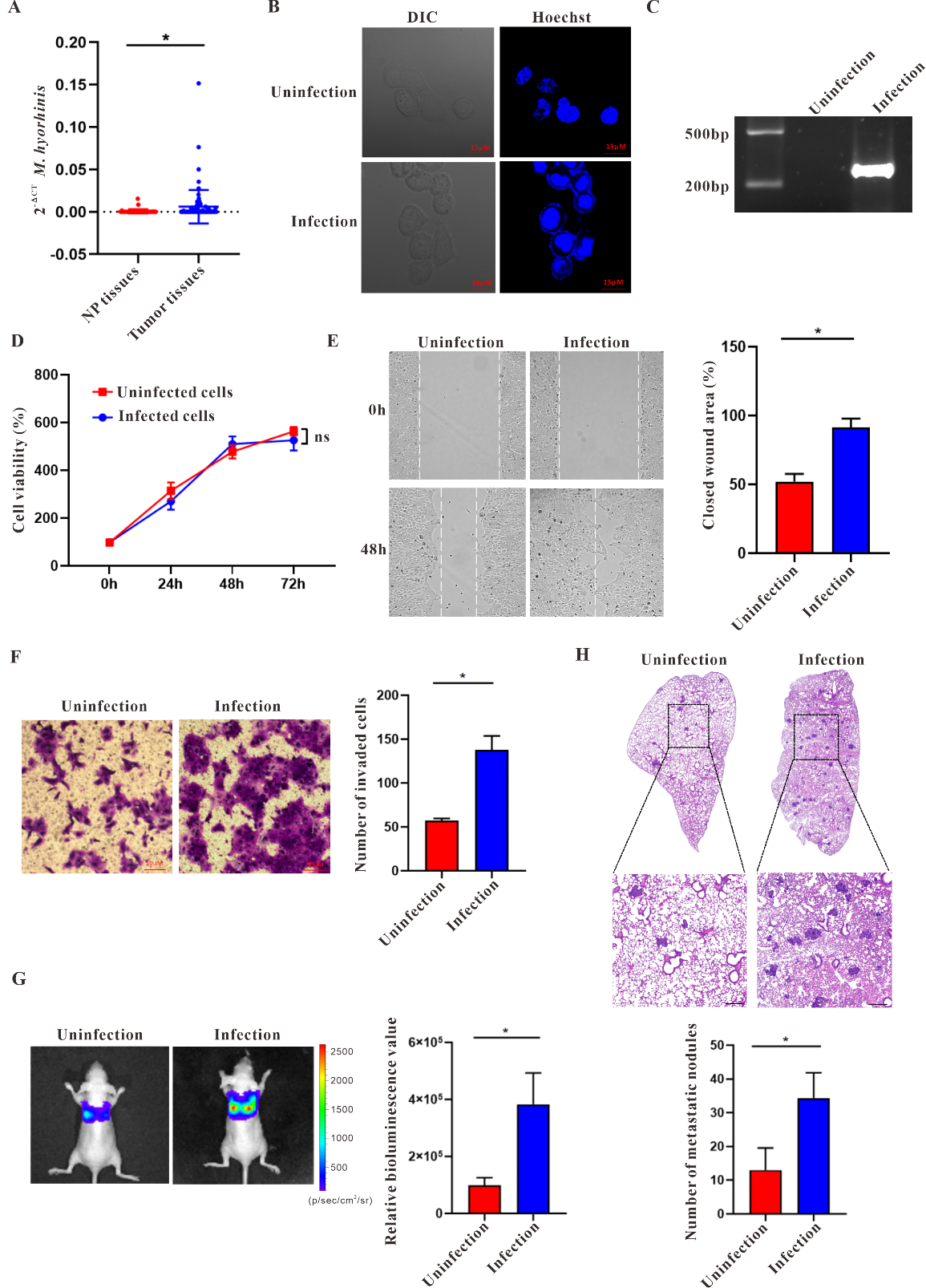 图1.猪鼻支原体感染促进食管鳞状细胞癌恶性表型