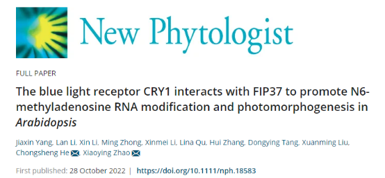 近日,ok1122诸侯快讯赵小英/何崇圣团队在国际权威期刊New Phytologist(IF=10.323)在线发表了题为“The blue light receptor CRY1 interacts with FIP37 to promoteN6-methyladenosine RNA modificationand photomorphogenesis inArabidopsis”的研究论文。该研究报道了拟南芥蓝光受体CRY1与m6A甲基转移酶复合体成员FIP37互作,促进m6A修饰和光形态建成的新机制。
