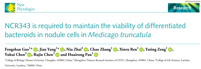 近日,ok1122诸侯快讯潘怀荣教授课题组在植物学国际知名期刊《New Phytologist》上发表论文,报道了蒺藜苜蓿NCR343在调控终极分化后共生体存活方面的重要功能。