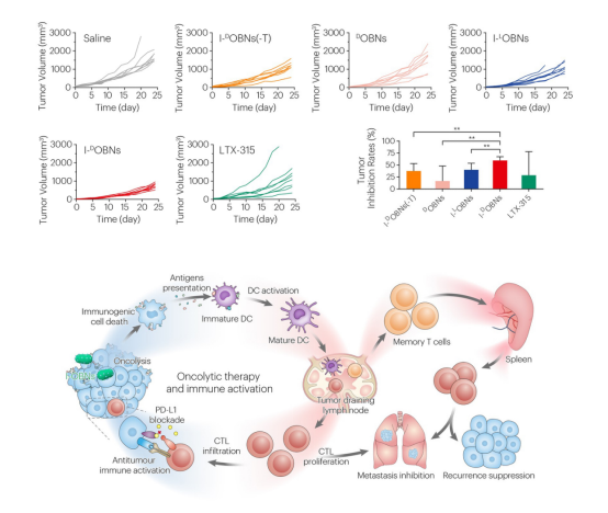 ok1122诸侯快讯徐翔晖/李亚超研究团队聚焦于溶瘤多肽药物基础与应用研究中的关键挑战。在前期研究中,该团队提出了生物活性多肽药物结构的原始创新设计理论,成功构建了手性仿生溶瘤多肽药物,为解决溶瘤多肽药物活性不足的问题提供了全新的解决方案。近期,研究团队从多肽药物仿生制剂学的角度出发,以多层次模拟溶瘤细菌的结构与功能为思路,成功发展出了可实现系统给药、激活肿瘤微环境、重编程免疫微环境的多肽仿生溶瘤细菌药物。研究结果显示,通过静脉注射仿生溶瘤细菌药物,可实现手性色氨酸支化溶瘤肽的靶向溶瘤效应,融合分子治疗成功解除了溶瘤诱导的免疫抑制,从而有效遏制了荷瘤小鼠模型中的肿瘤增长和肿瘤转移,显著抑制了肿瘤的复发。相比之下,D型仿细菌溶瘤药物(DOBNs)表现出比L型仿细菌溶瘤药物(LOBNs)及临床级溶瘤肽更强的溶瘤疗效。