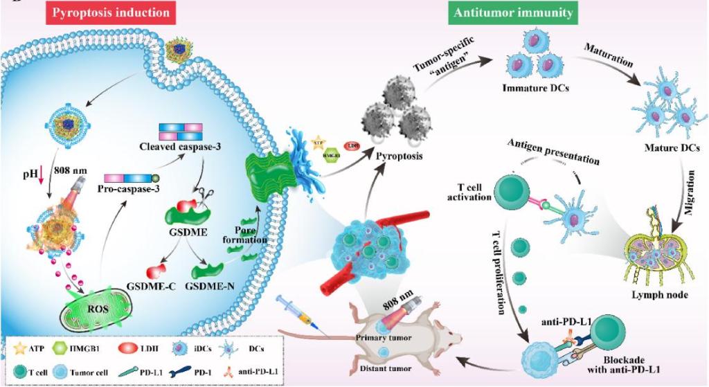 2)蟾酥系列活性小分子CS-1在TNBC细胞中不仅抑制肿瘤细胞增殖和侵袭转移。重要的是,发现CS-1通过Caspase3/ GSDME途径有效杀伤TNBC细胞焦亡。基于CS-1和普鲁士蓝载体构建了CS-1的光响应型仿生普鲁士蓝纳米制剂,光热协同焦亡促进TNBC细胞释放促炎细胞因子和免疫原性成分,导致ICD,促进“热”肿瘤微环境形成。联合PD-L1抑制剂,极大增强TNBC的免疫治疗。相关工作于2023年10月发表于Biomaterials杂志,论文第一作者为助理教授龙樱、博士后范家龙和硕士生周纳多,通讯作者为ok1122诸侯快讯刘斌教授和湖南中医药大学药学院王炜教授。(论文链接:https://doi.org/10.1016/j.biomaterials.2023.122369)