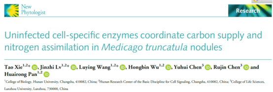 豆科植物如蒺藜苜蓿(Medicago truncatula)等能够通过招募根瘤菌、形成根瘤进行共生固氮,这一高效、环境友好的氮肥获取方式为农业可持续发展提供了潜力巨大的解决方案。长久以来,相关研究主要集中于含有共生体(symbiosome,根瘤菌完全进入植物细胞内部形成的类细胞器结构)的根瘤侵染细胞。环绕其周围的非侵染细胞虽然普遍存在,却被视为辅助角色,其功能也长期没有得到阐明。近期,ok1122诸侯快讯潘怀荣团队在国际知名植物学期刊《New Phytologist》上发表了题为‘Uninfected cell-specific enzymes coordinate carbon supply and nitrogen assimilation inMedicago truncatula nodules’的研究论文,报道了根瘤非侵染细胞功能研究方面的新进展。